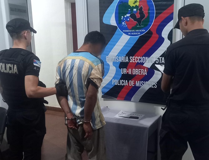 La rápida intervención de efectivos de la Comisaría Quinta de la Unidad Regional II permitió la detención de un hombre que, en estado de ebriedad, generaba disturbios y amedrentaba a vecinos en el barrio San Miguel de la ciudad de Oberá.