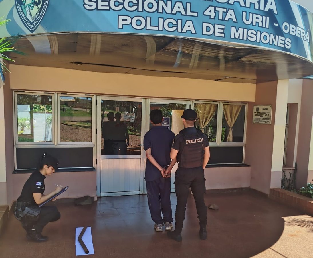Un hombre de 33 años fue detenido en la tarde de este domingo en Oberá tras protagonizar un violento episodio en el interior de una vivienda, donde mediante el uso de una barra de hierro destrozó la puerta de acceso y profirió amenazas de muerte contra su madre de 72 años y su hija menor, situación que motivó un inmediato despliegue policial por parte de los agentes de la Unidad Regional II.