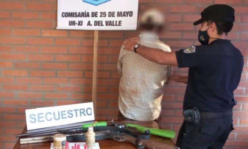 Ocurrió en el Paraje Camión Cué, donde los efectivos de la Comisaría y división Comando Radioeléctrico de 25 de Mayo, arrestaron a un hombre de 55 años e incautaron cartuchos de varios calibres y dos escopetas que presumiblemente las utilizó para amenazar a sus vecinos.