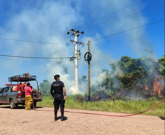 Efectivos de la División Comando Radioeléctrico de la Unidad Regional XIII intervinieron este miércoles por la mañana en un incendio de malezas registrado en el acceso al área de Teyú Cuaré, en jurisdicción de San Ignacio.