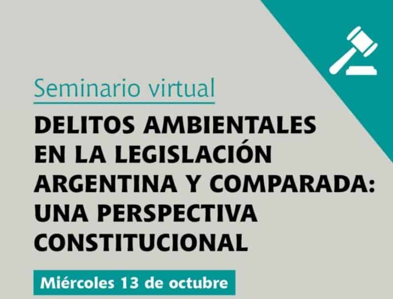 El seminario “Delitos ambientales en la legislación argentina y comparada: una perspectiva constitucional” se desarrollará el miércoles 13 de octubre, de 16.30 a 19.30 de manera virtual. La inscripción es gratuita y se entregarán certificados de asistencia. Disertarán reconocidos especialistas en la materia.