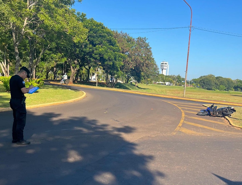En el lugar, efectivos de la Comisaría 13ra UR-I constataron el despiste de una motocicleta Gilera Smash 110 cc, que circulaba por avenida Ulises López en sentido sur–norte, al mando de Yohana Maribel F. (39), quien cayó sobre la cinta asfáltica en la rotonda ubicada en dicha intersección.