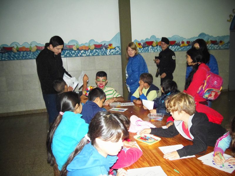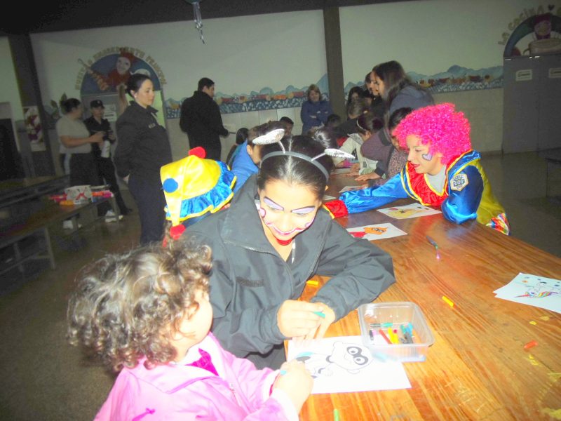 Un grupo de cadetes y profesionales realizaron durante la jornada varias actividades. Los profesionales primero realizaron dibujos y pintura con los niños.