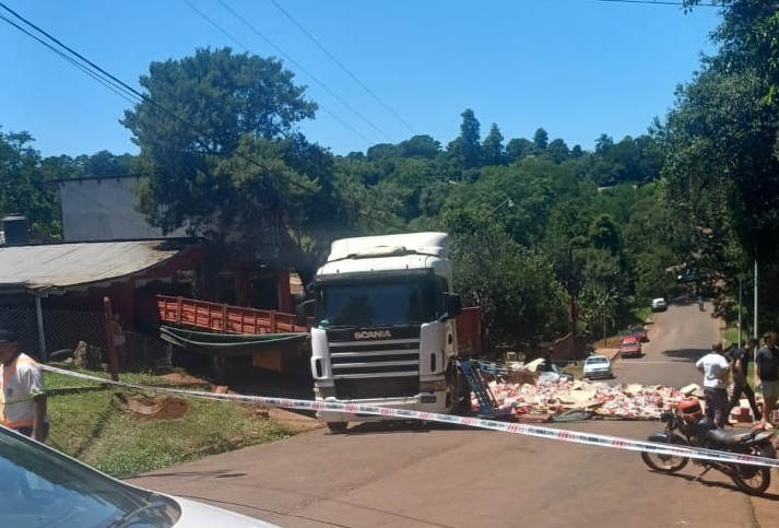 Un camión que trasportaba cerveza protagonizó un despiste durante la mañana de este viernes en la ciudad de Oberá, ocasionando importantes daños materiales tras afectar una vivienda y volcar parte de su carga. No se registraron personas lesionadas.