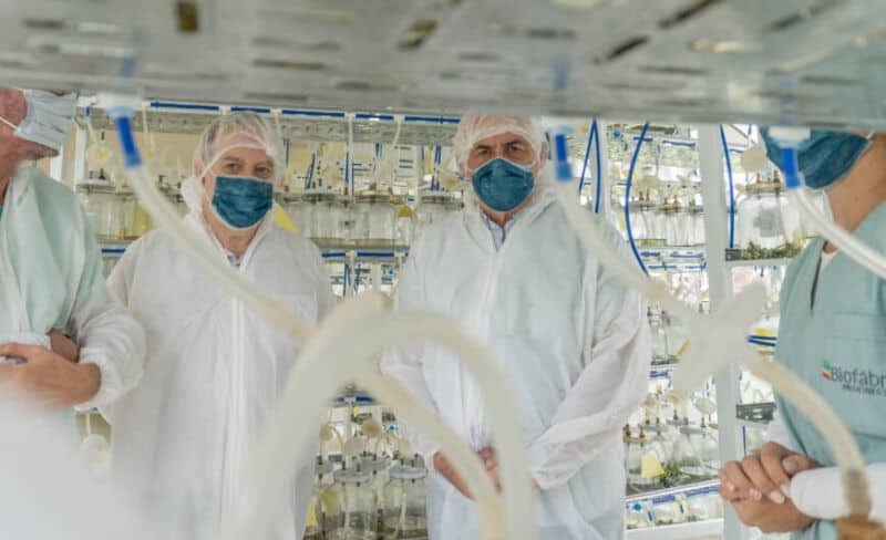 Conocer las instalaciones y las posibilidades tecnológicas que se desarrollan en los laboratorios de vitroplantas en Biofábrica fue el objetivo del recorrido realizado por el presidente de MisioPharma Jorge Alonso, acompañado por Shlomo Booklin, reconocido asesor internacional de la industria del cannabis medicinal. Pudieron conocer sobre el proceso de multiplicación con el sistema de micropropagación utilizado para obtener clones con la garantía de replicar plantas de calidad sanitaria y genética.