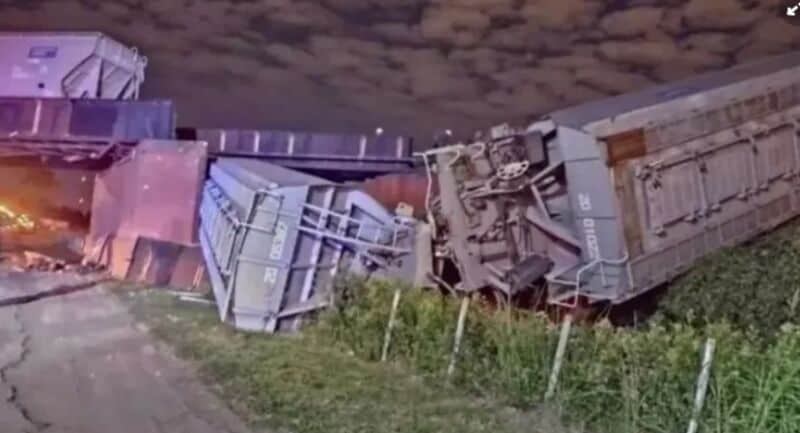 La formación, precisó este domingo Trenes Argentinos Cargas (TAC) en un comunicado, pertenece a la línea San Martín. El evento involucró un total de cinco vagones cargados con soja, de los cuales dos quedaron tumbados al costado de la ruta nacional 33 y tres unidades sobre el puente (dos semitumbados y uno descarrilado).