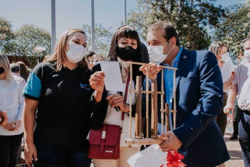 Durante el acto, además se descubrió a modo de inauguración un banco "inclusivo" para incorporar la silla de ruedas realizado por los estudiantes de la EPET N°18 y el Consejo Municipal de Discapacidad. También el IFAI entregó dos máquinas de coser industriales a la cooperativa “Hilvanando Esperanza”. Del mismo modo, desde la Subsecretaría de Tierras se otorgaron títulos de propiedad a cuatro vecinos del pueblo y otra al municipio.