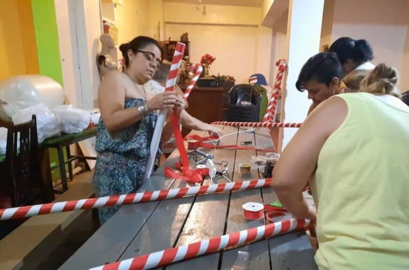 Para ello, los integrantes de la Dirección General de Desarrollo Social, instruyen, en esta primera etapa, en la confección de gorros y bastones. Vale mencionar que la mayoría de estos materiales fueron reciclados.