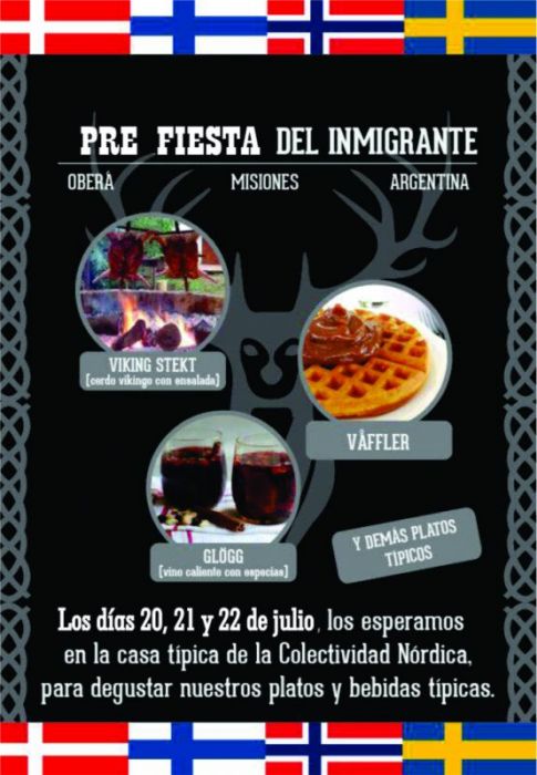 Colectividad Nórdica: ofrece el Cerdo Vikingo, además de platos y bebidas típicas. Todos los días estará abierta la casita con hamburguesas, panchos, waffles y el domingo al mediodía abre la Casa Típica con cerdo vikingo o pollo (c/ensalada).