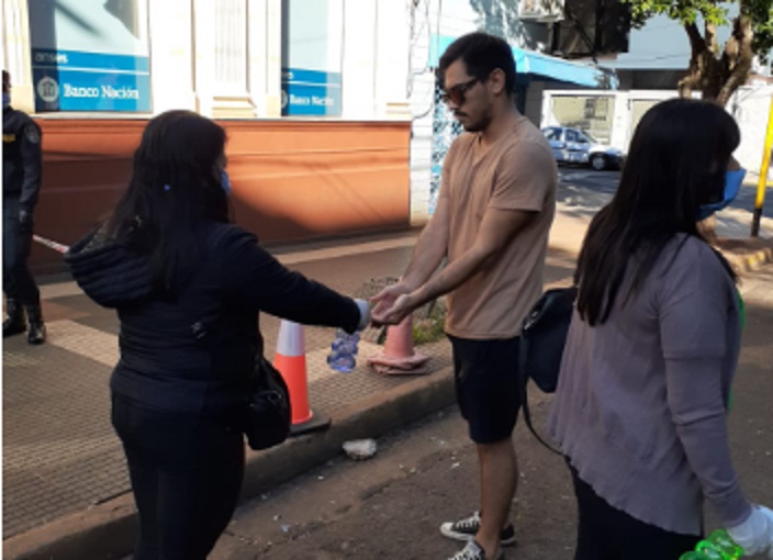 Así fue que un grupo de agentes municipales del área de Coordinación y Control de Gestión estuvieron durante la mañana del sábado y domingo acompañando y organizando a la gente para evitar aglutinamiento. Para la espera en la fila se los organizó con sillas, respetando la distancia obligatoria y se les brindaba alcohol en gel.
