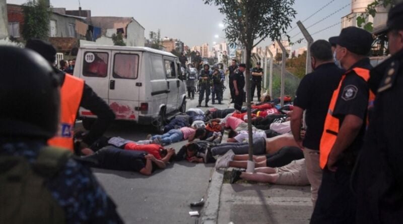 Según le contaron a Télam fuentes judiciales alrededor de “200 hinchas, muchos de ellos integrantes de la facción de la barra que responde a ‘Bebote’ Alvarez se hallaban dentro del anillo de seguridad que la Policía pretendía hacer para arrancar el operativo".