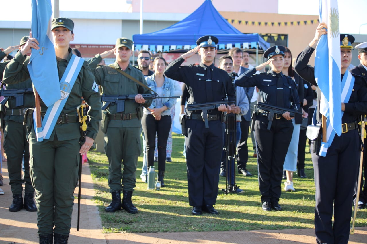 Con sentido fervor y sensaciones resplandecientes la ciudad se cubrió de un manto celeste y blanco engalanando una de las plazas principales del populoso barrio, donde autoridades locales, miembros de las fuerzas armadas, instituciones escolares y el público en general se hicieron presentes para llevar adelante este gran acto conmemorativo.