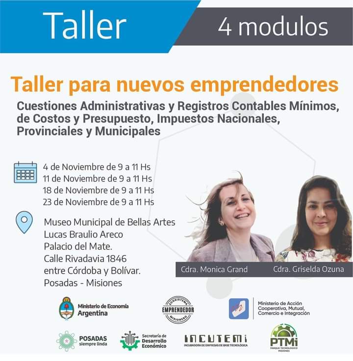 La inscripción es sin costo y se dictará en el Museo Municipal de Bellas Artes, Lucas Braulio Areco Palacio del Mate, por Calle Rivadavia 1846 entre Córdoba y Bolívar. Se desarrollarán cuestiones administrativas y registros contables mínimos, costos y presupuestos, como también se abordarán impuestos nacionales, provinciales y municipales que se encuentran alcanzados según el emprendimiento.