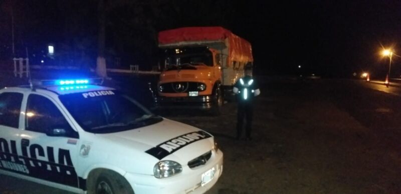 El hecho ocurrió a las 20:45, cuando personal de la División Seguridad Vial y Turismo, realizaban un dispositivo de seguridad sobre la ruta en mención, donde detectaron en el camión Mercedes Benz 1518, la carga de maíz distribuida en bolsas de 30 kilos, trasportadas irregularmente.