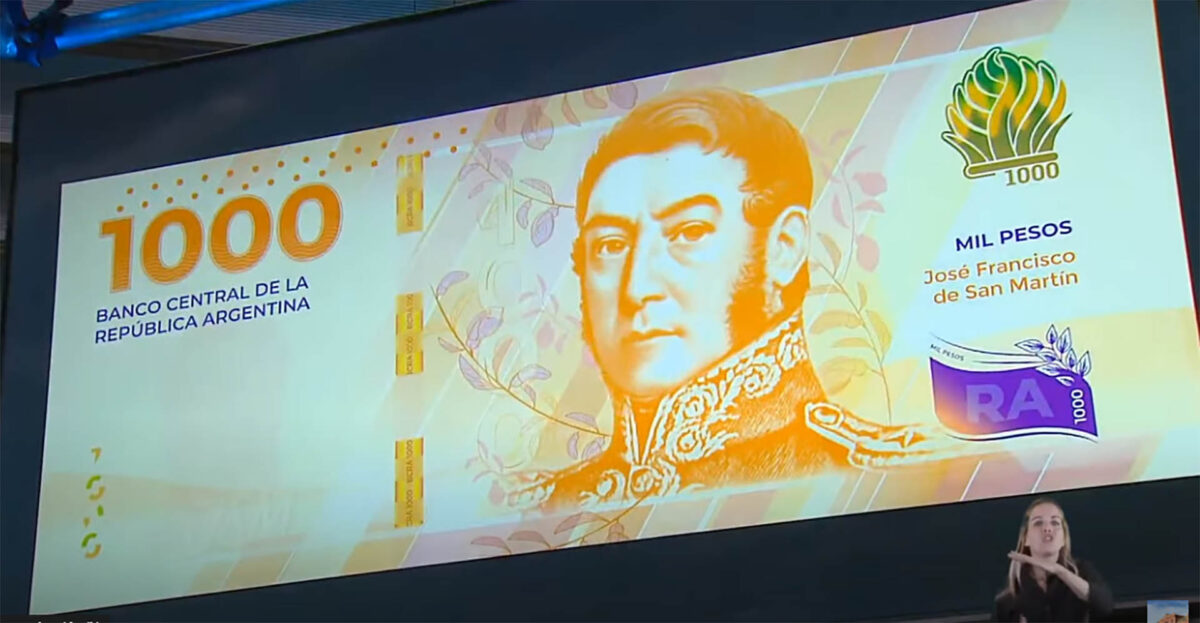 El Banco Central de la República Argentina (BCRA) puso hoy en circulación el nuevo billete de $1000 con la imagen de José de San Martín, tras haber desaparecido con los extintos billetes de $5 pesos.