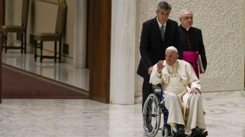 De hecho, Francisco arrastra un dolor en la rodilla derecha desde inicio de año, producto de un problema en el ligamento que lo obligó a suspender audiencias y a dar algunos discursos sentado.