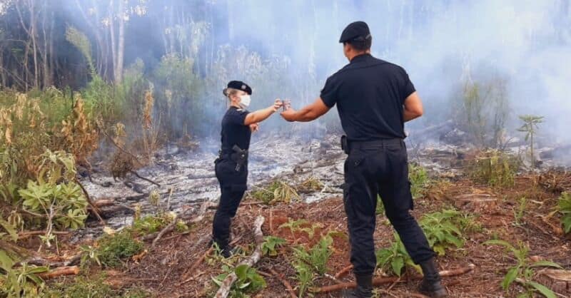 Este martes, personal policial de la División Comando Radioeléctrico Santa Rita, tomó conocimiento mediante un llamado anónimo que en un terreno rural del Paraje Laranjeira de Alba Posse, se incendiaban malezas y árboles.