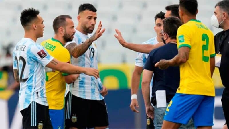 El partido se suspendió el pasado 5 de septiembre en San Pablo, a los cinco minutos de juego con el marcador 0 a 0, cuando autoridades sanitarias brasileñas ingresaron a la cancha para objetar la participación de cuatro futbolistas argentinos acusados de no cumplir con las normas vigentes en Brasil por la pandemia de Covid-19.