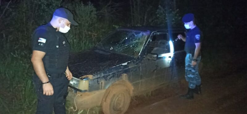 El lunes cerca de las 21 horas, los efectivos realizaban recorridas por la zona del Paraje Bajo Pepirí de la localidad de Bernardo de Irigoyen, cuando encontraron un auto marca Fiat Uno a la vera de un camino terrado con todas las puertas abiertas y el vidrio de la puerta delantera derecha dañada.