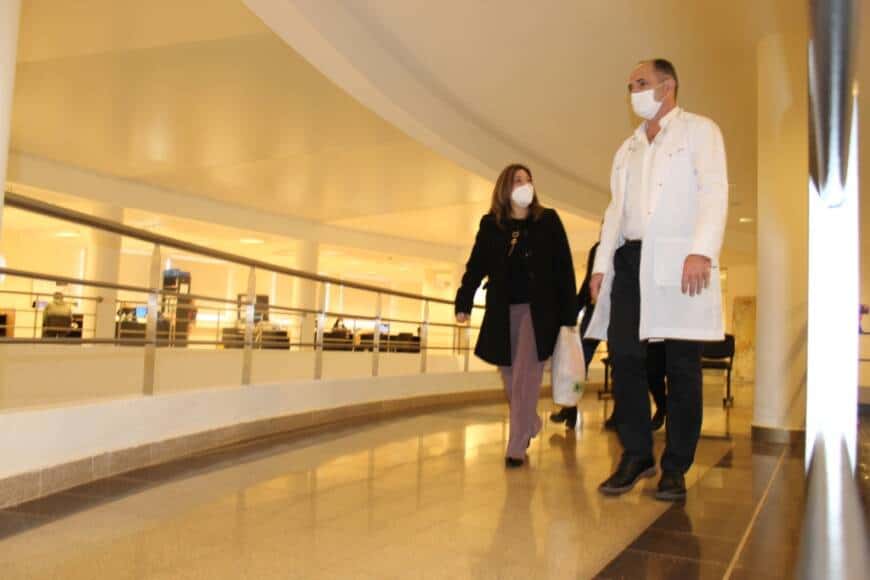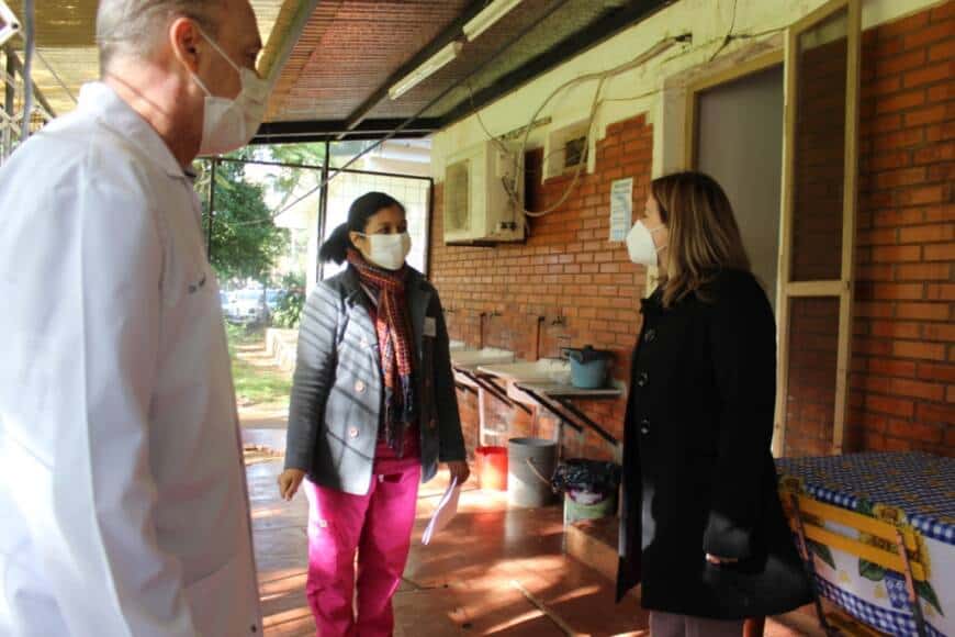 Acompañada por la subsecretaria de Comercio e Integración, María Eugenia Quiroga, la funcionaria recorrió las distintas áreas del hospital y por la residencia donde se alojan y reciben asistencia las madres que tienen a sus hijos internados en cuidados intensivos.