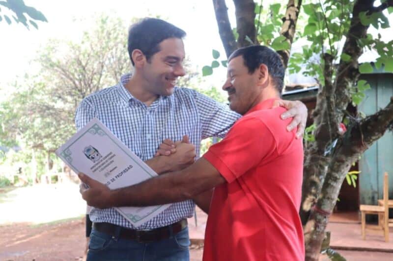 “Estamos visitando a familias de Panambí. En esta oportunidad a Narcisa, en su casa, que nos permitió entrar a traerle el título de propiedad de su casa. Esta es una solución que cómo dice el gobernador, Oscar Herrera Ahuad, es como si fuera el DNI porque la pertenencia de la tierra es como la identidad de cada uno”, señaló el ministro.