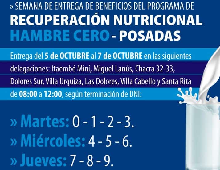 El Ministerio de Desarrollo Social, la Mujer y la Juventud, a través de la Subsecretaria de Derechos Económicos, Sociales y Culturales, comunica que a partir del martes 5 de octubre inicia la entrega de los beneficios del programa de Recuperación Nutricional Hambre Cero.