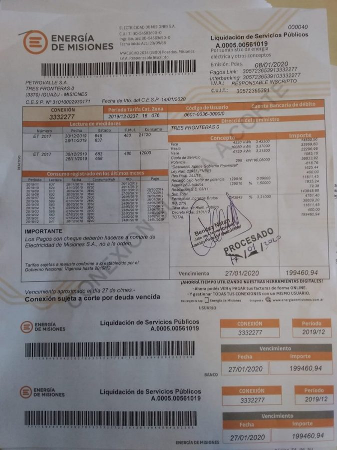 Desde la empresa, explican que "habida cuenta de la existencia de una Fake News o Noticia Falsa, donde maliciosamente se pretende hacer creer que el Hotel Amerian Portal del Iguazú estaría pagando 3000 pesos de luz por mes, adjuntamos el real consumo y factura del hotel, que asciende a casi 1 millón de pesos en la suma de Hotel y Centro de Convenciones".