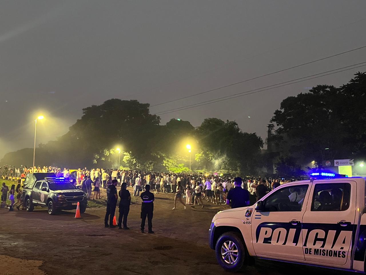 En ese contexto, durante la madrugada del 1 de enero se registró una intervención puntual en la ciudad de Jardín América, donde, tras una alerta ingresada al sistema de emergencias 911, efectivos policiales procedieron a la clausura preventiva de un gimnasio en el que se desarrollaba una fiesta clandestina. En el lugar se constató la presencia de menores de edad y la falta de habilitación municipal, labrándose las actuaciones correspondientes y dando intervención a las autoridades judiciales competentes.