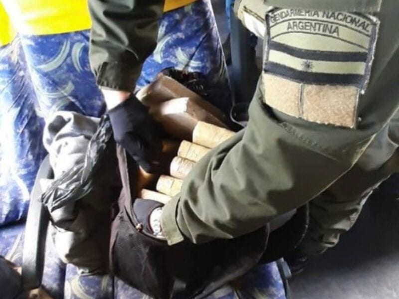 Al registrar un ómnibus Los Helechos, había 10 kilos 400 gramos del estupefaciente trasladados en una mochila.