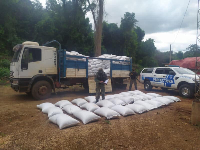 Efectivos de la Prefectura Naval Argentina decomisaron un cargamento de casi siete toneladas de semillas de maíz en El Soberbio.