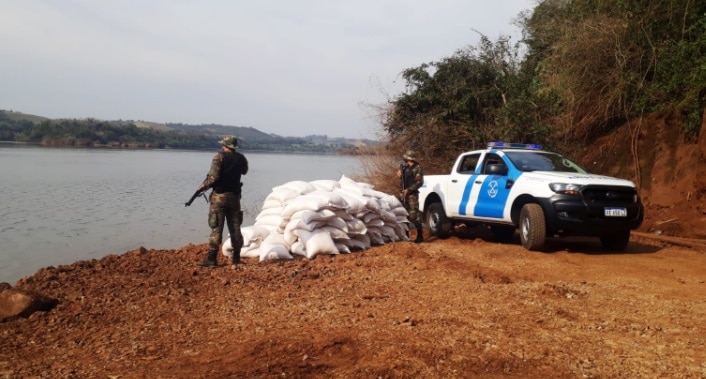 El primer operativo ocurrió en el kilómetro 1.140 del río Uruguay, en donde el personal de la fuerza, que custodiaba la zona fronteriza, halló acopiadas en la costa y listas para ser transportadas, 120 bolsas que contenían 50 kilogramos de maíz cada una.
