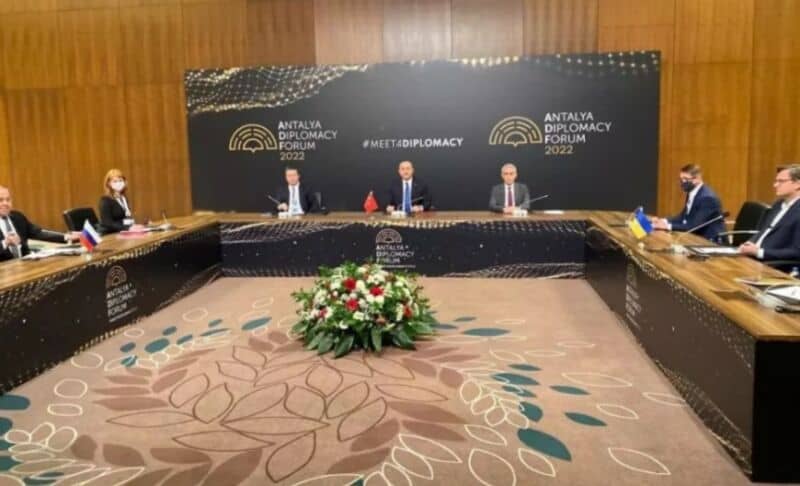 Los ministros de Relaciones Exteriores viajaron a la ciudad de Antalya para verse las caras y resolver la disputa por la vía diplomática, sin embargo no lograron avances concretos. A su vez, ya se celebraron tres rondas de conversaciones de paz en Bielorrusia pero ninguna dio resultado.
