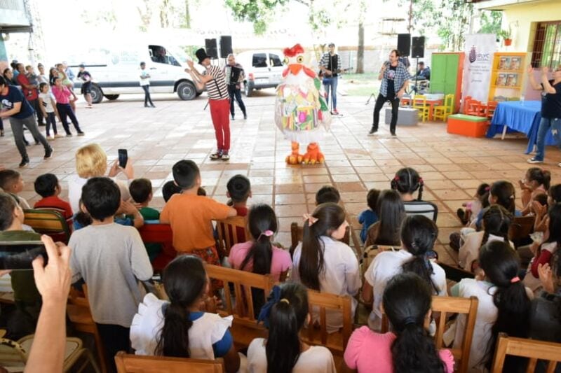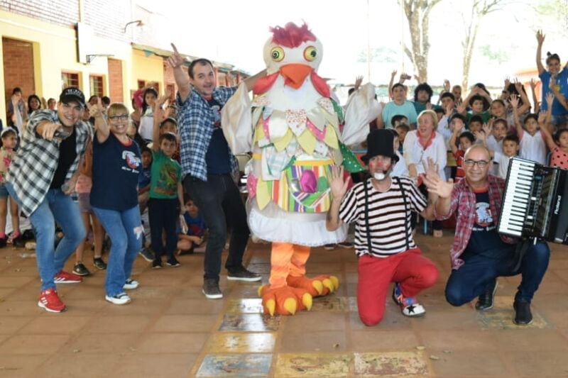 Junto al payaso “Poca Sopa”, participaron de concursos y recibieron merecidos premios. La Gallina Turuleca, con su colorido traje, también tuvo su momento de “gloria”. Todo el encuentro fue amenizado por la banda “Suena Sanfona”, con ocurrentes canciones, que siempre buscan dejar una enseñanza a los pequeños.
