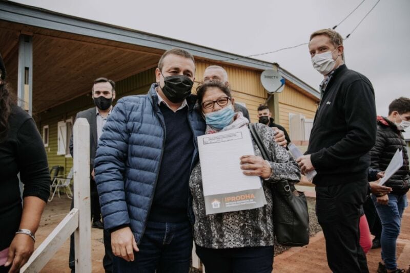 Las viviendas entregadas hoy, construidas por el IPRODHA, son de tipo sustentables, progresivas de madera y están agrupadas en dos sectores. También, en el día de la fecha, se oficializó la adjudicación de las 54 familias del asentamiento Las Tacuaritas, que fueron relocalizadas luego de la última emergencia climática.