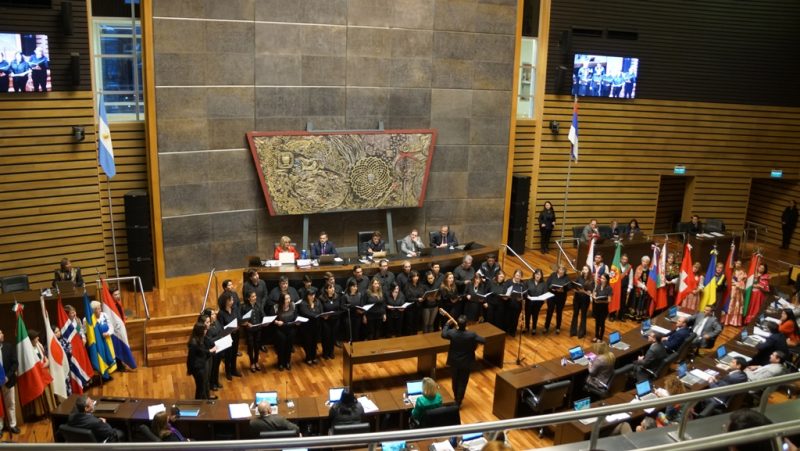 En la apertura, y bajo la dirección de Cristian López, actuó el Coro Municipal Coral Oberá, en homenaje al aniversario 90 de la ciudad homónima. Estuvieron acompañados por los abanderados de todas las delegaciones de inmigrantes que conforman la Federación de Colectividades de ese municipio misionero.