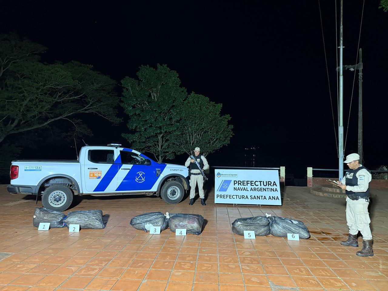 La Prefectura Naval Argentina incautó un cargamento de 82,9 kilos de estupefacientes durante un operativo realizado en la localidad misionera de Santa Ana.