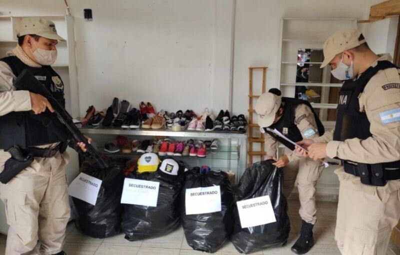 Por tal motivo, se efectuaron dos allanamientos en locales comerciales de la ciudad antes mencionada, con los siguientes resultados: más de 600 pares de calzados, más de 1.400 prendas de vestir, termos, pavas eléctricas ,entre otros elementos de interés para la causa, todos sin su correspondiente documentación respaldatoria.