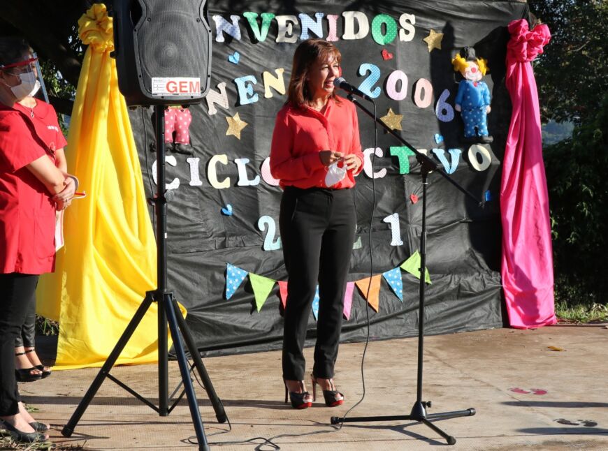 “Hoy saludamos en primer lugar a las Familias donde se dan los primeros pasos y a la segunda familia que tenemos que es en la educación, con las maes, los docentes, los profesores y directivos. Y esa es la apuesta que tenemos como sociedad, la única forma de transformar la sociedad es estudiando” fueron algunas de las palabras del alcalde municipal, Dr. Carlos Fernández en el acto inaugural de la vuelta a clases presenciales de los NENI.