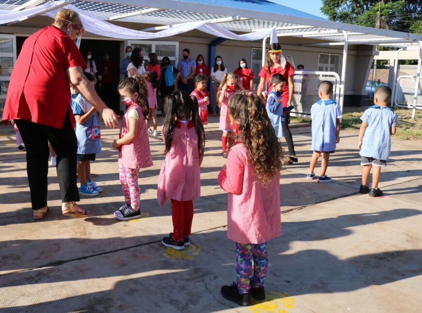 El encuentro se desarrolló en el patio de dicho establecimiento bajo todas las medidas sanitarias. La directora del NENI 2006, Myriam Krieger brindó unas palabras de bienvenida a los alumnos, padres y autoridades presentes. Luego la supervisora de nivel inicial, Daniela Gonzales saludo a los presentes y agradeció al Intendente por los trabajos de mantenimiento que realiza el personal de la Dirección de Obras y Servicios Públicos en los edificios educativos.