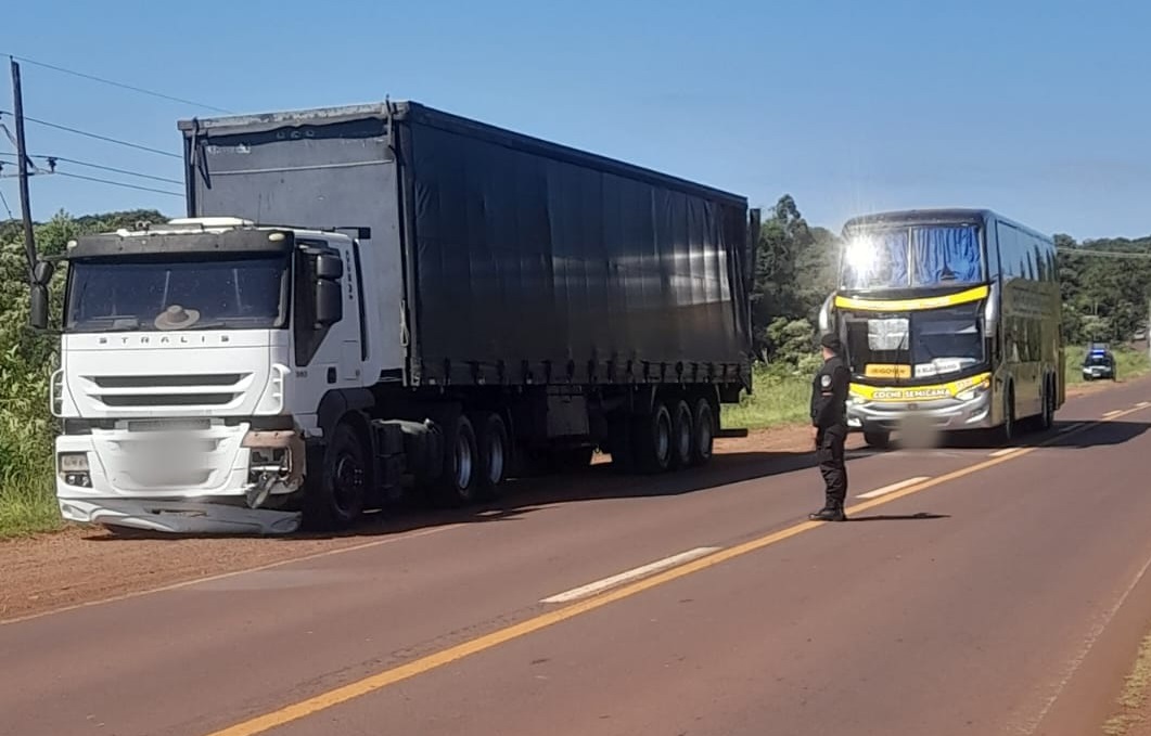 Esta mañana, se registró un siniestro vial sobre la ruta nacional Nº 12, a la altura del kilómetro 1440, en jurisdicción de Jardín América, donde se vieron involucrados tres camiones.