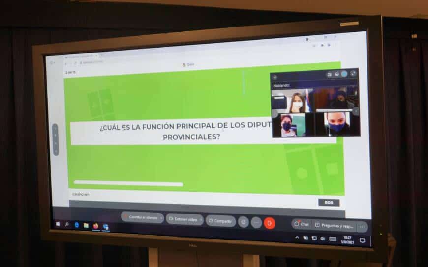 Entre hoy jueves 5 y mañana viernes 6 de agosto, los 80 representantes de las instituciones sorteadas participarán por videoconferencia en la plataforma Webex, de charlas, exposiciones y competencias para aprender -a través del juego- el funcionamiento de la Legislatura provincial, el rol de los representantes y la forma en que una idea se convierte en ley.