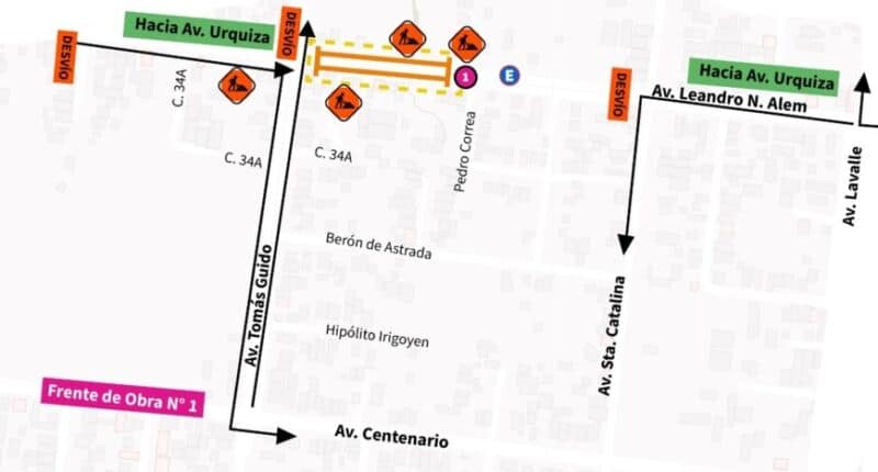 Los vehículos provenientes desde el oeste (Villa Cabello hacia el centro) deberán ingresar por Tomás Guido y continuar su recorrido por Centenario o por avenida Urquiza, mientras que los que provengan desde el este (centro hacia Villa Cabello), deberán desviarse hacia Urquiza por av Lavalle o hacia Tambor de Tacuari por santa Catalina.
