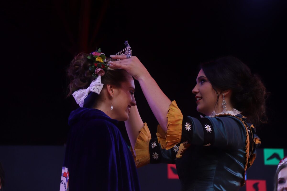 La reina saliente, Loren Mitchel, la presidente de Federación de Colectividades Marta Wieremiey; y el ministro de Turismo de Misiones José María Arrúa, se encargaron de colocar la banda y la capa, entregar el cetro y de coronar a la flamante soberana de todos los inmigrantes.