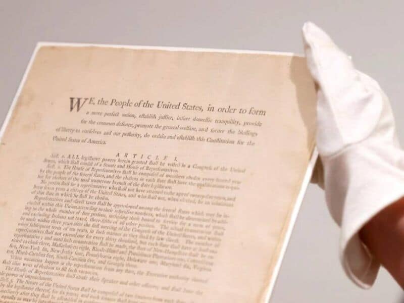 El célebre texto, con el famoso preámbulo “Nosotros, el Pueblo de los Estados Unidos, (...) proclamamos e instituimos esta Constitución para los Estados Unidos de América”, fue aprobado el 17 de septiembre de 1787.
