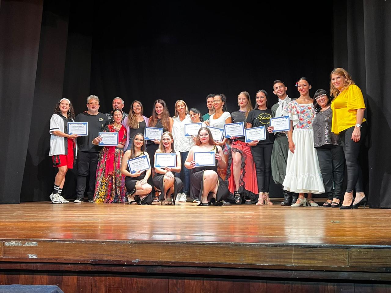 Rojas y Mutti entregaron certificados de participación a los docentes y profesores que fueron parte de la velada. Así, Franco Pacheco, del Ballet Folklore Vivo; Sol Artaza del grupo Patria y Tradición de la Peña Itapúa; Carmen del Piano, de la Escuela Superior de Danzas de la provincia; Leyla Caballero, Abril Cambas, Mayra Antúnez, Nara Cantero y Villalba de la Academia Superior de Danzas Habibi; Silvia Godoy y Analía Brítez de la Escuela de Danzas Kamar Yarak; Natalia Houghan, de Habibi Vijayas; Berenice Olivera y Leandro Acuña de Guaynamérica Danza; Romina Maluf del Complejo Alhambra; Macarena Broda de Danza con Maca Broda y Verónica Diedrich del Estudio de Danzas DCH, recibieron sus certificados y el agradecimiento de los presentes por la tarea que realizan día a día.