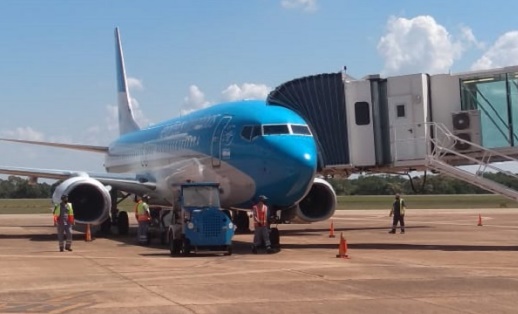 El vuelo AR 1782 de Aerolíneas Argentina arribó al aeropuerto Carlos Krause de Iguazú en la tarde de este domingo y después partió hacia Chaco con 71 pasajeros.