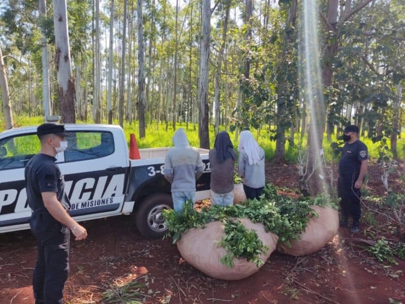 Los agentes de la comisaría local, fueron alertados por un hombre quien indicó que en su lote en Colonia Cuña Pirú de esa localidad, habían tres jóvenes cosechando ilegalmente hojas verdes de yerba en su propiedad.