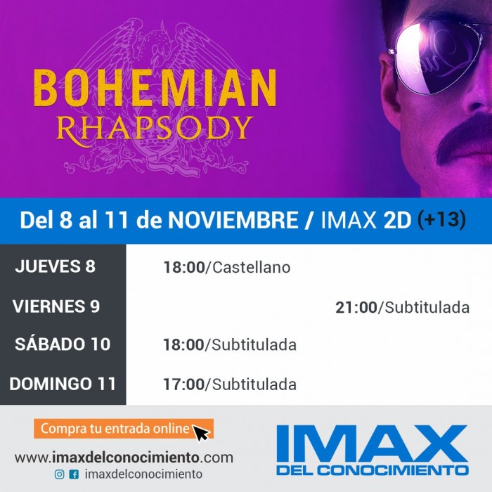 El IMAX del Conocimiento continúa con una cartelera que lleva todas las críticas a su favor, el film que retrata la vida y obra del sin igual Freddie Mercury y su legendaria banda Queen. Además, se contará con la participación de los Grillos sinfónicos con música y baile en vivo.