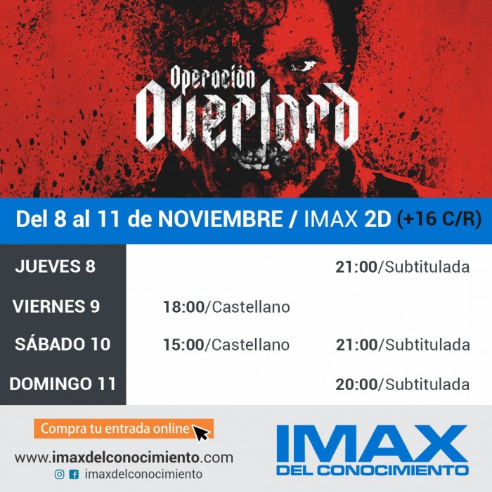 Para los amantes de los films bélicos y de terror el IMAX del Conocimiento suma a su propuesta para este fin de semana un film que sintetiza dos géneros muy taquilleros. La parte bélica-histórica hace referencia al escenario de la batalla y el desembarco de Normandía llamada Operación Overlord, conocida también como el Día D, donde los aliados liberaron en 1944 a Europa Occidental de la ocupación Nazi. La parte de terror viene dada por el extravío de un grupo de soldados de EEUU que descubren un extraño laboratorio donde se realizan experimentos con seres humanos cumpliendo el sueño de crear una raza de superhombres que previsiblemente se convierten en soldados monstruosos.