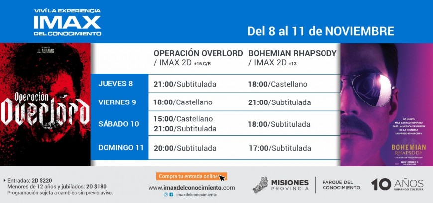 Cartelera del IMAX del Conocimiento del jueves 8 al domingo 11 de noviembre. (2D)